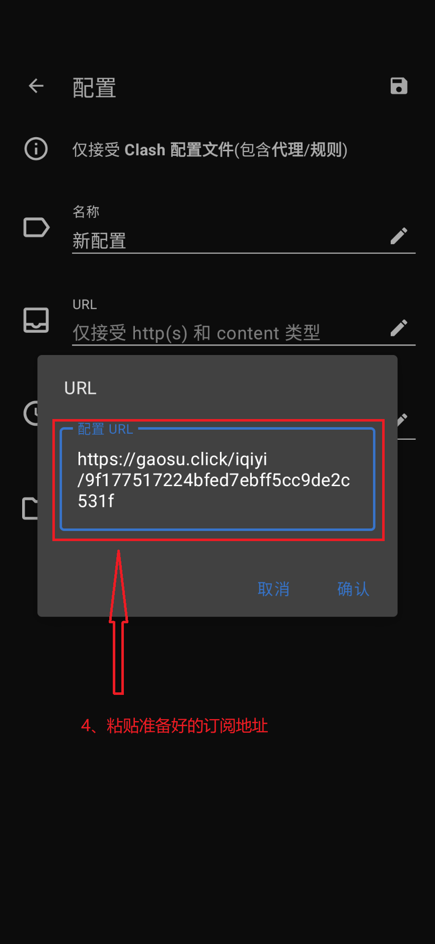 - 粘贴订阅地址